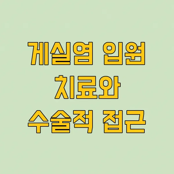 게실염이 심하거나 복통, 발열이 심한 경우, 또는 고령이거나 면역력이 저하된 환자의 경우에는 입원 치료가 필요할 수 있습니다.