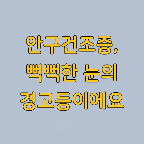 아침에 일어날 때부터 눈이 뻑뻑하고 이물감이 느껴진다면, 안구건조증을 의심해 볼 수 있어요. 이는 눈물이 부족하거나 그 구성 성분이 불균형해지면서 나타나는 질환이랍니다.