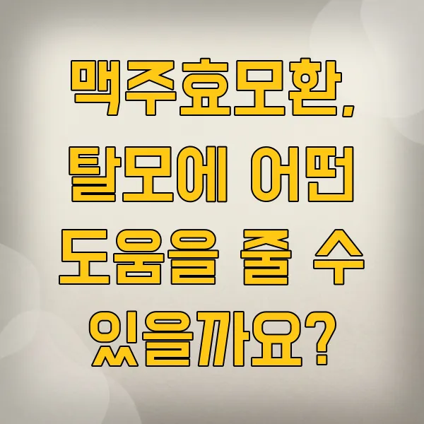 탈모 고민, 맥주효모환으로 해결할 수 있을지 궁금하시죠? 맥주효모환의 성분과 실제 효과, 그리고 올바른 섭취법까지 꼼꼼하게 알아보고 현명한 선택을 도와드릴게요.